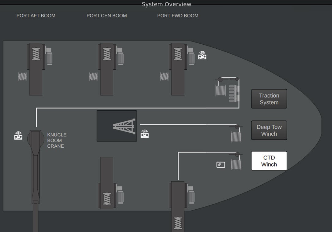 CTD绞车- 导缆至右舷前行车臂- 从控制室控制(用HMI标志表示)